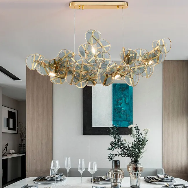 Серия светодиодных реечных люстр с плафонами из кракелированного стекла