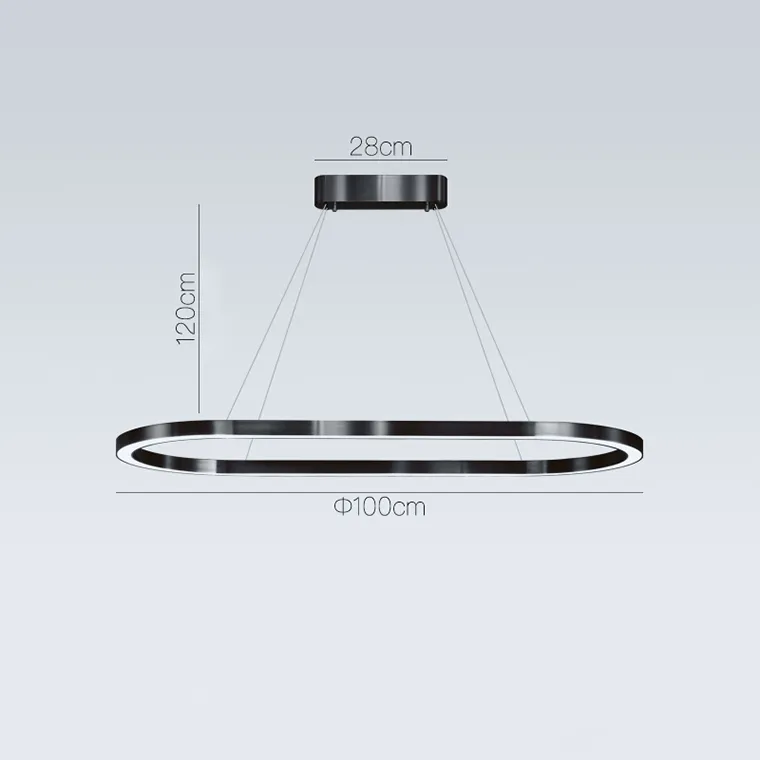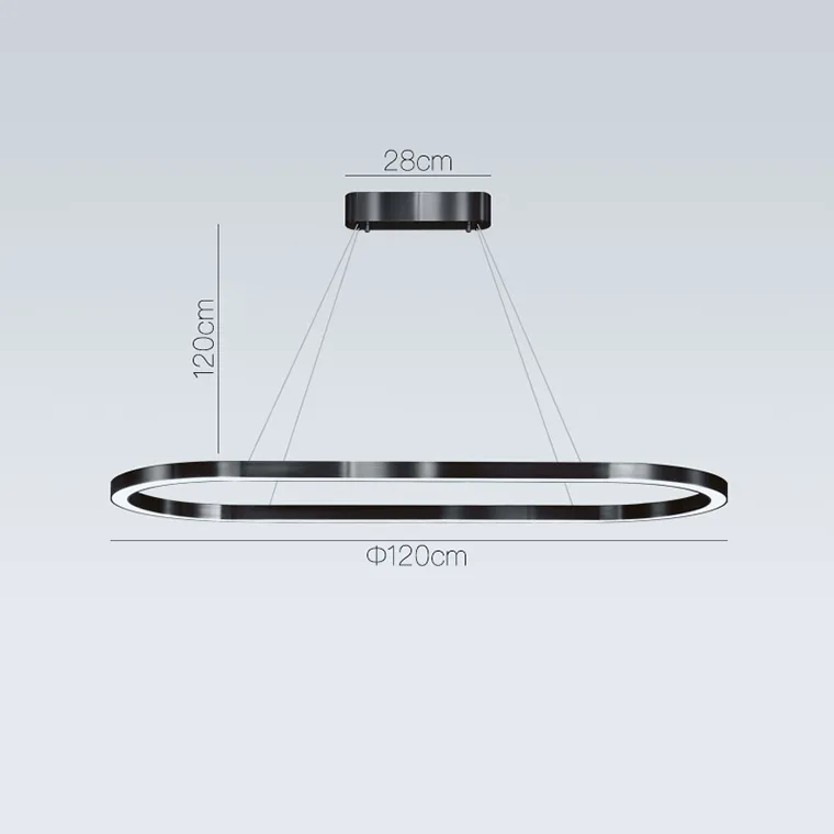 Серия светодиодных светильников с плафоном в виде закольцованной рейки с LED-подсветкой по низу корпуса в черном цвете