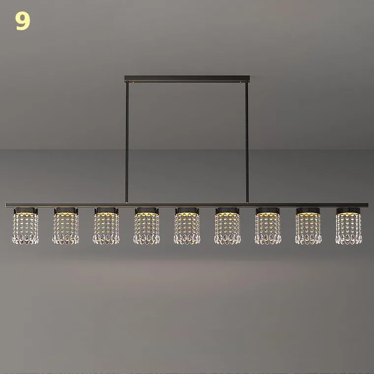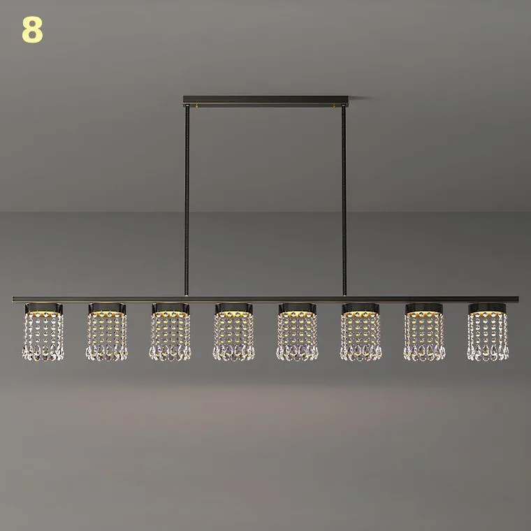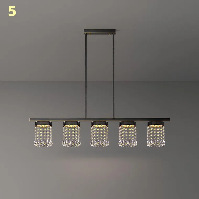 Черный реечный корпус из латуни добавляет светильнику стильный и современный вид. Он прекрасно сочетается с дисковидными плафонами, которые добавляют графичности и утонченности в дизайн. Граненые круглые хрустальные подвесы, в свою очередь, придают светильнику блеск и элегантность.