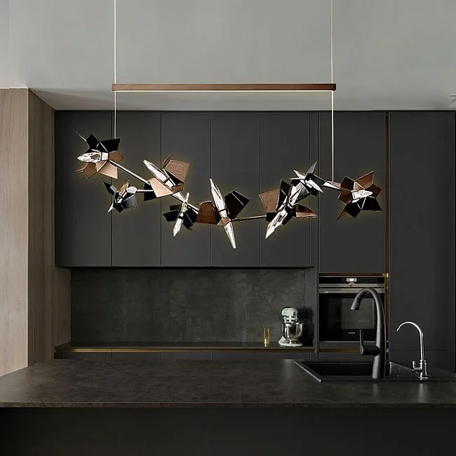 Этот светильник – это идеальный баланс индустриального шика и утонченного искусства. С его появлением ваша столовая или кухня обретет совершенно новое измерение, насыщенное искрами света и изысканным стилем. Мягкое, но в то же время эффектное освещение не просто освежит интерьер, но и сделает каждый ужин, каждое дружеское или семейное собрание особенным, незабываемым моментом.