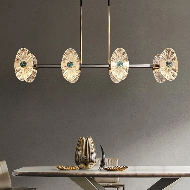 Вы готовы погрузиться в мир элегантности и изысканности? Наш реечный светильник с рельефными плафонами дисковидной формы с перламутровыми вставками станет идеальным дополнением для вашей столовой зоны или кабинета.