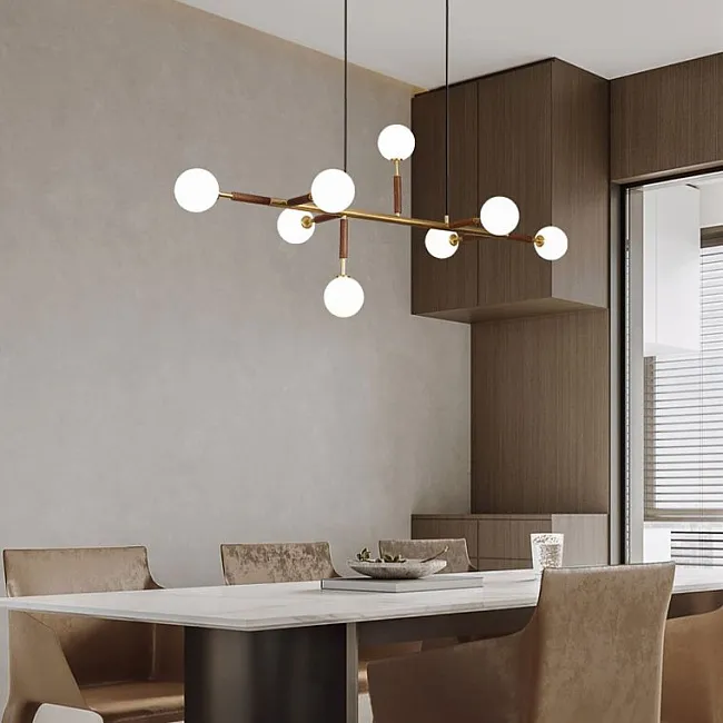 Струнный подвес не только придает светильникам элегантный и стильный вид, но также позволяет регулировать их высоту.