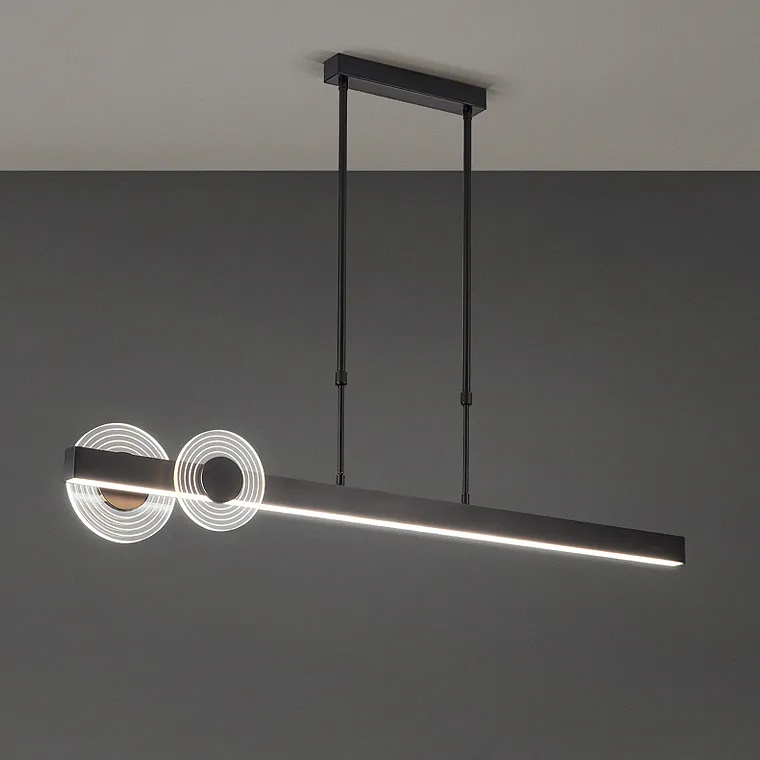 Реечный светодиодный светильник с двумя дисковидными рассеивателями на черном прямоугольном корпусе