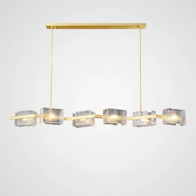 Прямоугольные плафоны из рельефного стекла, выполненные в изящной форме, обеспечивают равномерное и яркое освещение, создавая уютную атмосферу и подчеркивая элегантность интерьера. Струнный подвес позволяет регулировать высоту люстры, что делает ее универсальной для любого помещения. Люстра FABIOLA представлена в 4 вариациях - из 6 плафонов, из 8 плафонов, из 10 плафонов и составной из 2 колец на 6 и 10 плафонов.