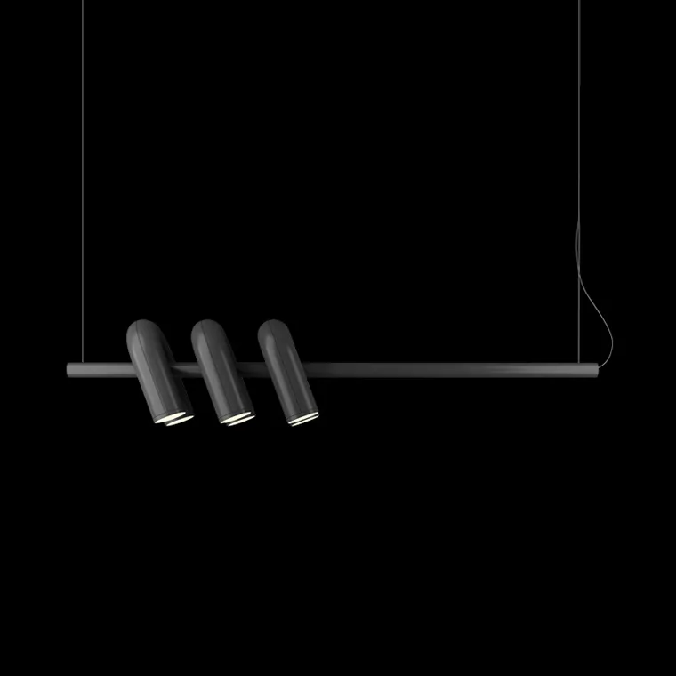 Дизайнерский светодиодный светильник с дугообразными трубчатыми плафонами на горизонтальной рейке