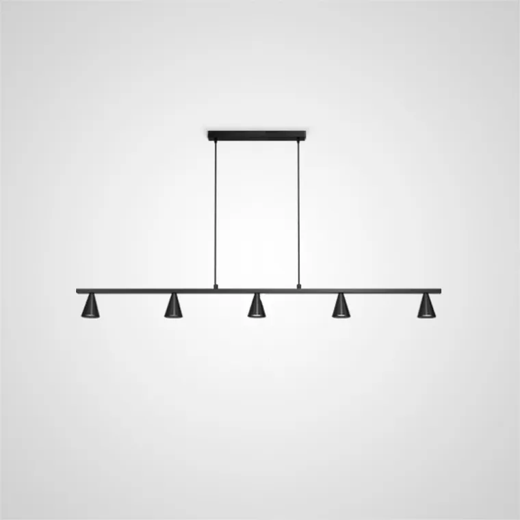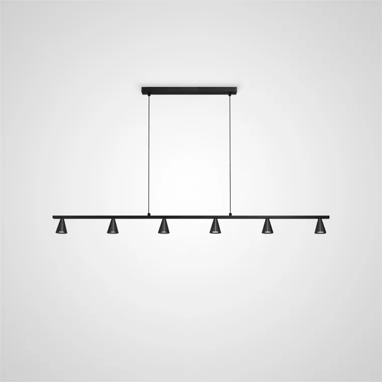 Серия реечных светодиодных светильников с коническими плафонами на черном прямоугольном корпусе