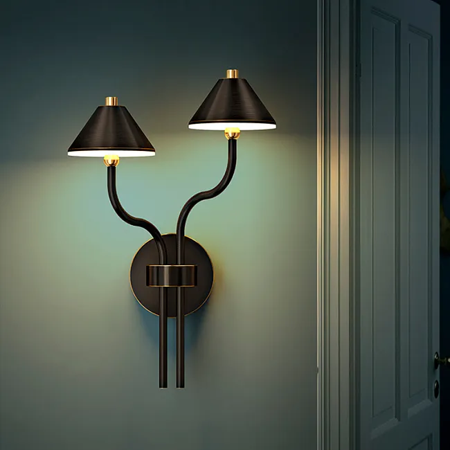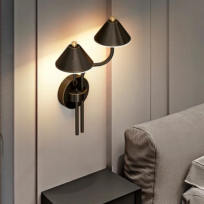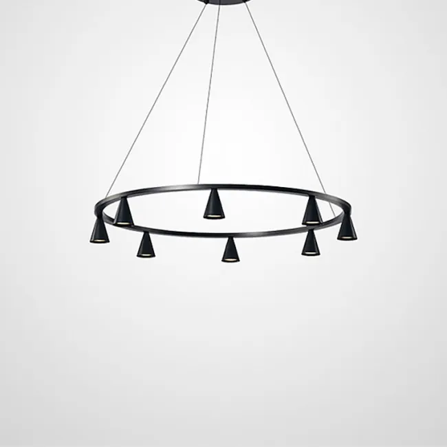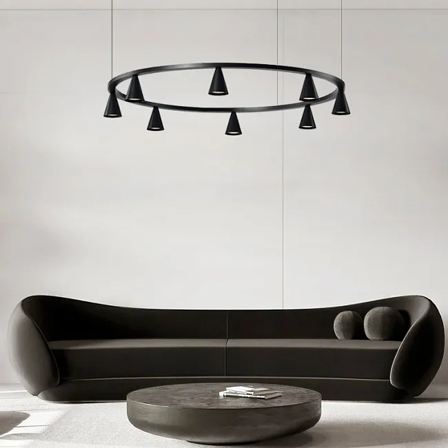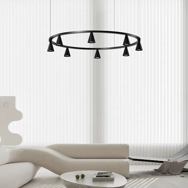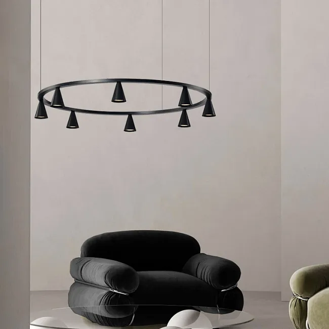 Серия реечных светодиодных светильников с коническими плафонами на черном прямоугольном корпусе