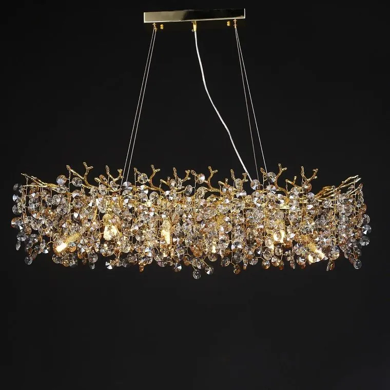 Серия реечных светильников с подвесным декором из прозрачного и тонированного хрусталя на ветвистом каркасе