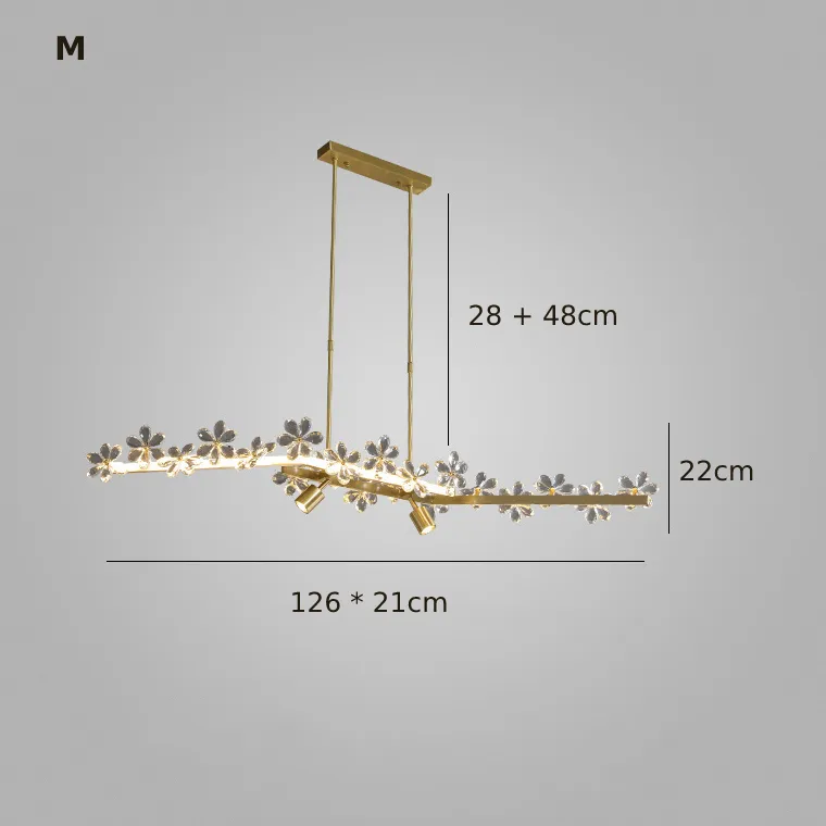 Реечный светильник с двумя поворотными цилиндрическими плафонами и хрустальными цветами на изогнутых рейках с LED-свечением