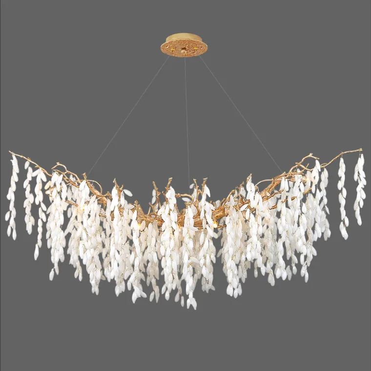Серия каскадных люстр с декором из подвесок со стеклянными камнями на ветвистом каркасе из настоящей латуни