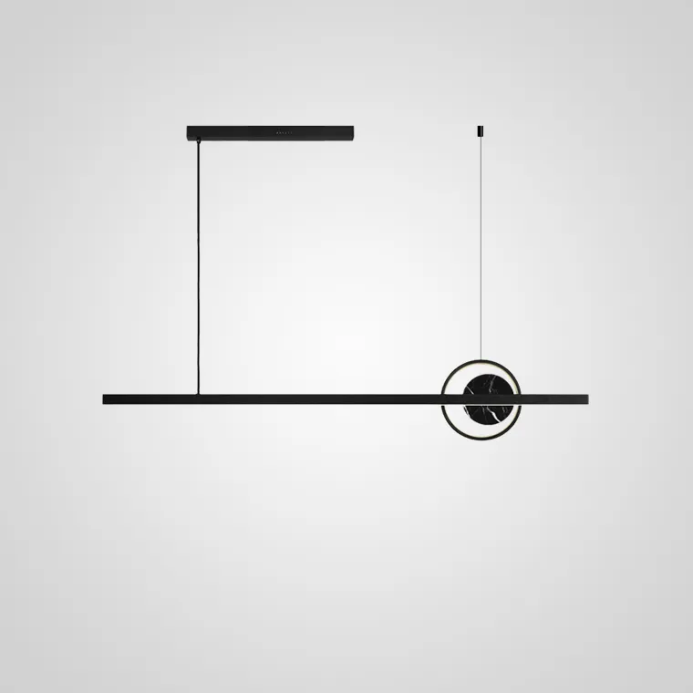 Серия реечных светильников в виде комбинации светодиодного кольца и декоративного диска из черного мрамора