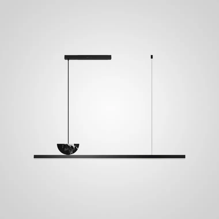 Реечный светодиодный светильник с мраморным декором в форме усеченного диска на черном прямоугольном корпусе