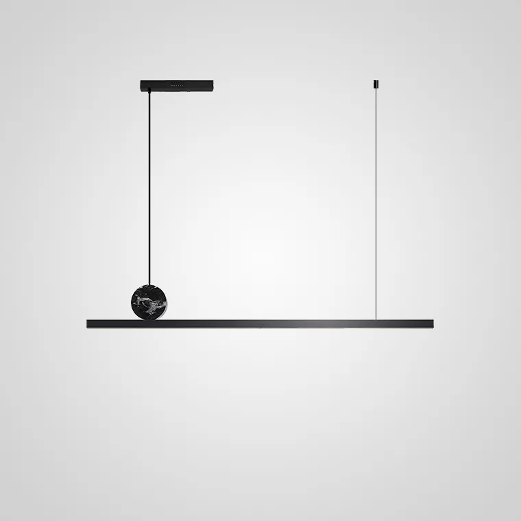 Реечный светодиодный светильник с декоративным диском из черного мрамора на прямоугольном корпусе