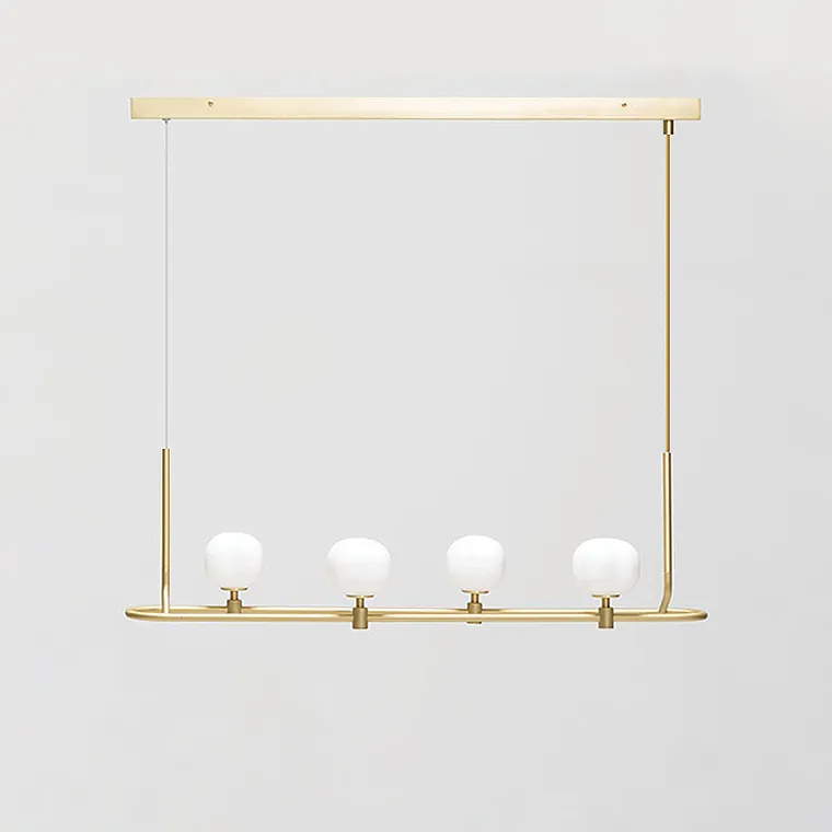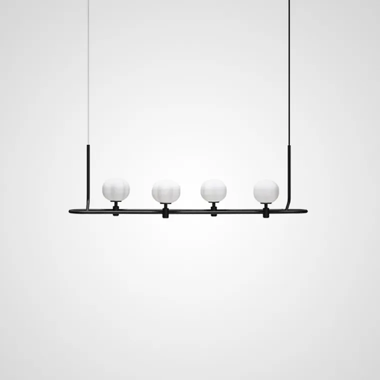 Серия реечных светильников с шарообразными плафонами из стекла на закольцованном каркасе