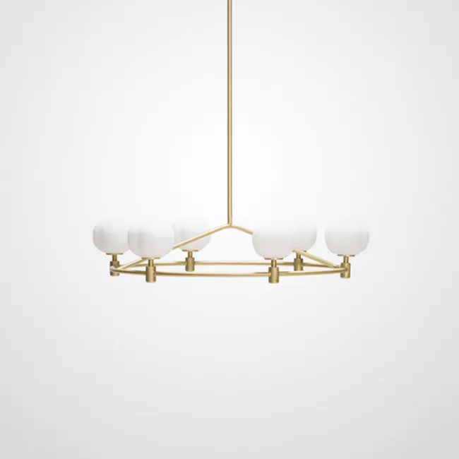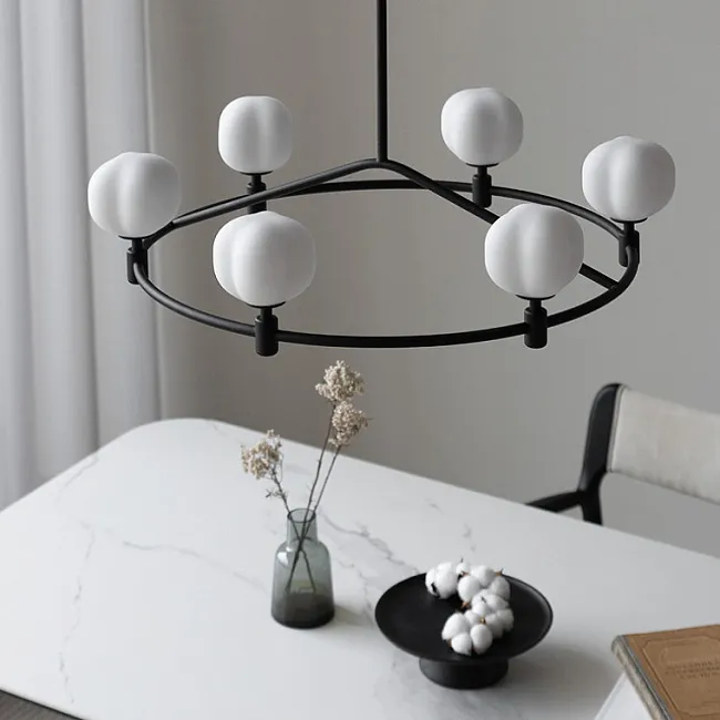 Серия реечных светильников с шарообразными плафонами из стекла на закольцованном каркасе