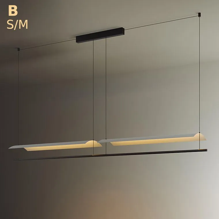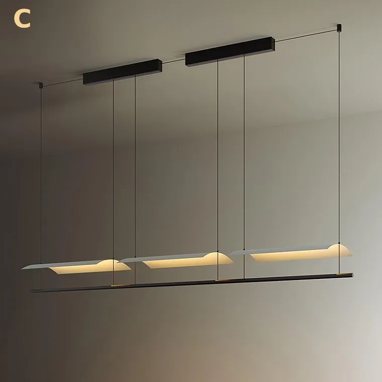 Белые рассеиватели светильников имеют форму изящных, выгнутых прямоугольных пластин, которые напоминают парус, вздымающийся на ветру.