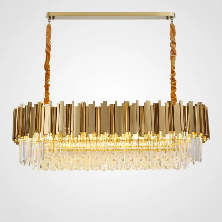 Дизайнерская люстра GENEVA LONG в европейском стиле со стеклянными подвесами и металлической окантовкой.