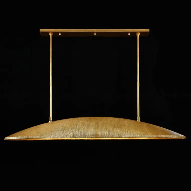 Реечный светодиодный светильник с металлическим плафоном вытянутой округлой формой с нанесением сусального золота