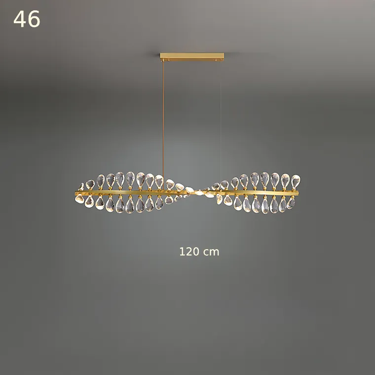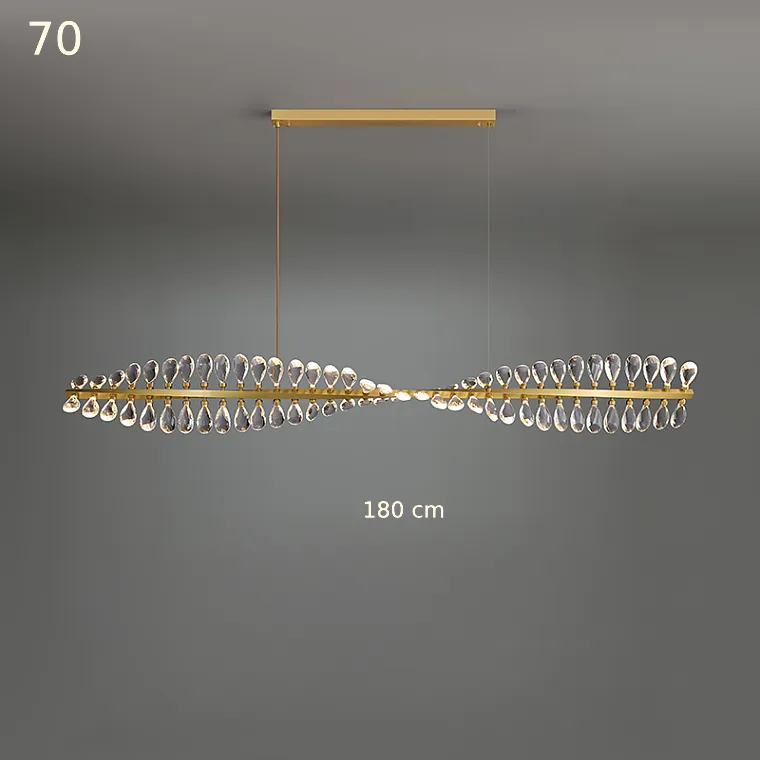 Серия люстр с линейным корпусом и спиральным расположением светодиодных источников света в виде хрустальных кристаллов