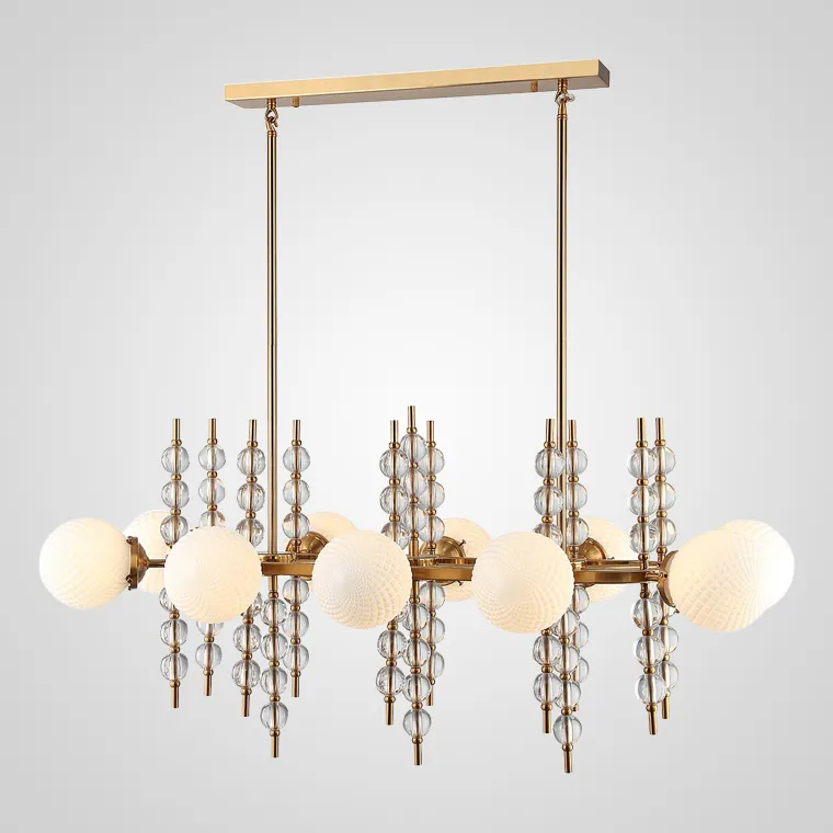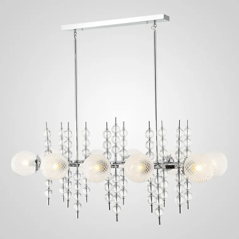 Реечная люстра в стиле модерн с основными круглыми плафонами из фигурного стекла и маленькими декоративными шарами