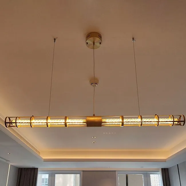Прямоугольная форма и направленный вниз световой поток создают уютную атмосферу, идеально подчеркивая пространство над кухонным столом или зоной отдыха. Светильник не только освещает, но и создает настроение — мягкое, теплое сияние превращает обычный вечер в момент наслаждения.