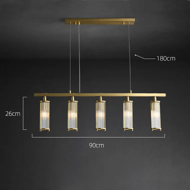 Реечный светильник с цилиндрическими плафонами из стеклянных стержней в бронзовой оправе