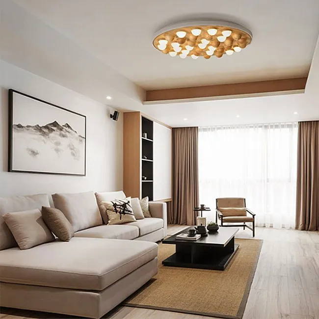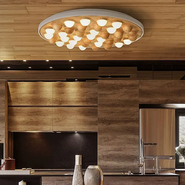 Вы можете выбрать идеальный размер для вашего пространства – от элегантного 85-сантиметрового до впечатляющего 120см варианта. А какой массив дерева будет украшать вашу люстру? Светлое дерево придаст комнате теплоты и лёгкости, тёмное дерево добавит загадочности и глубины, а комбинированный вариант со светлым и темным деревом обогатит интерьер игрой оттенков. И если вы настроены на смелые эксперименты, фантазийный вариант с имитацией дерева, направленного вверх, точно не оставит никого равнодушным.