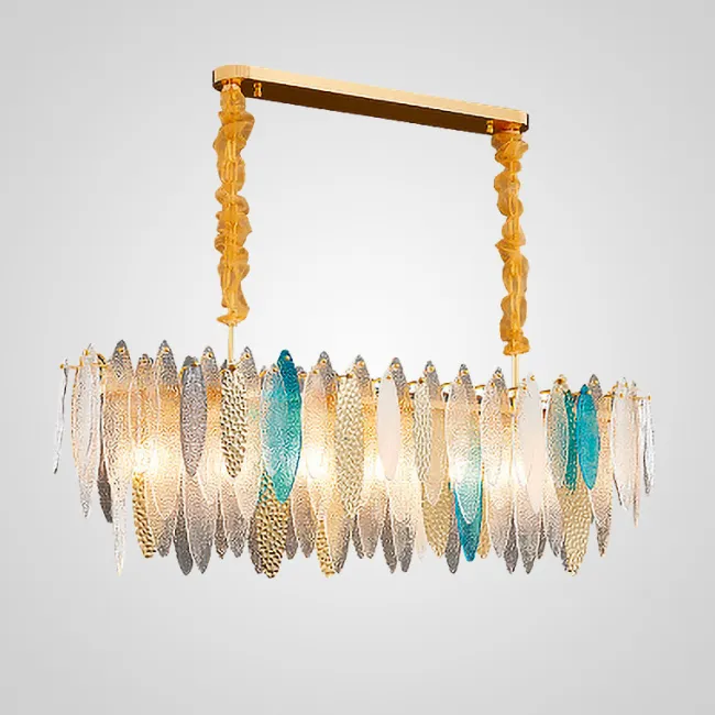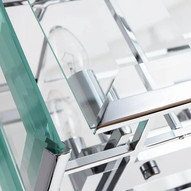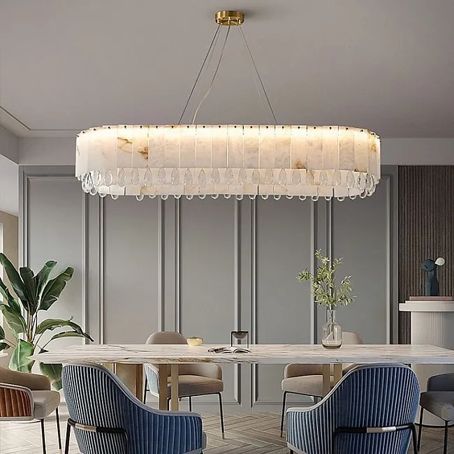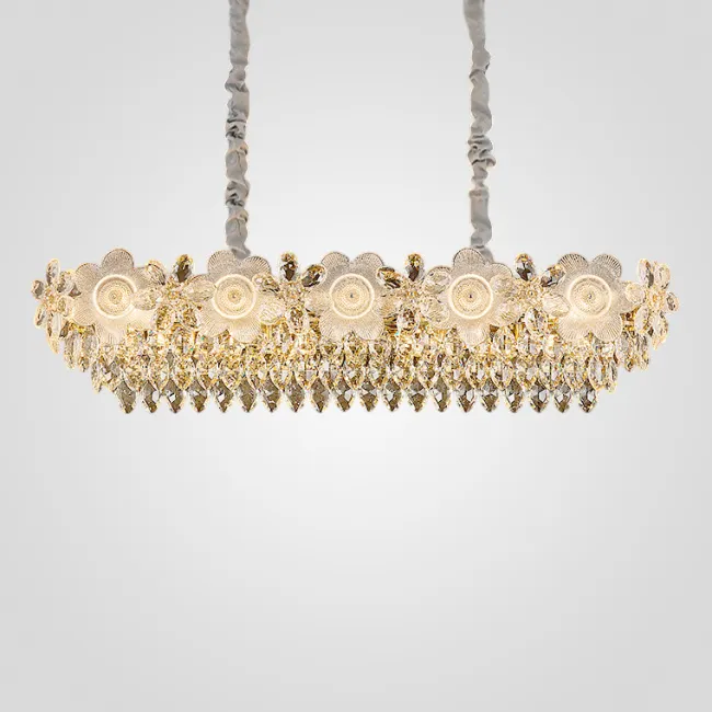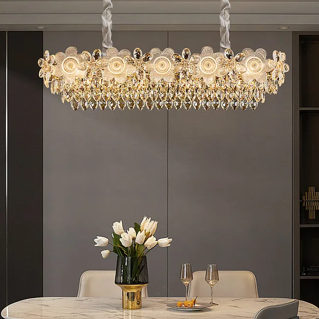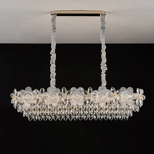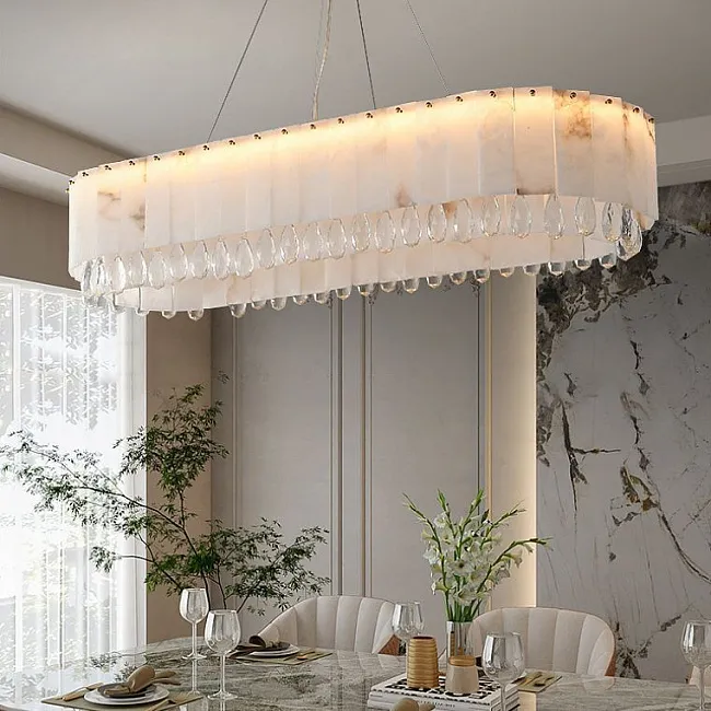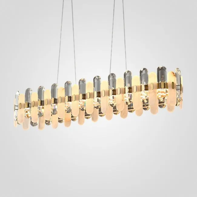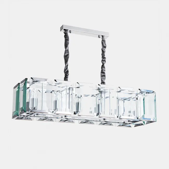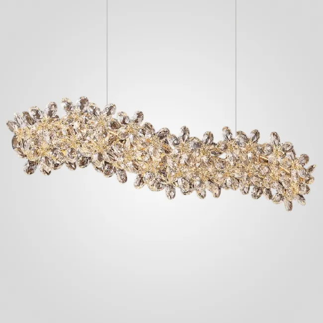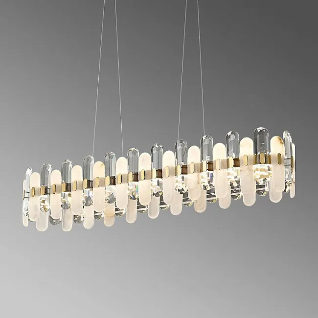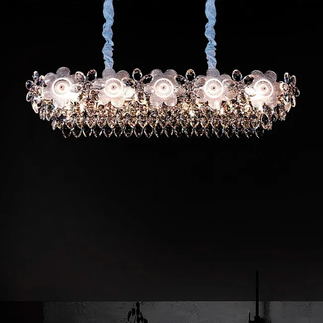 Реечный светильник в виде комбинации колец и хрустальных подвесок на металлическом каркасе