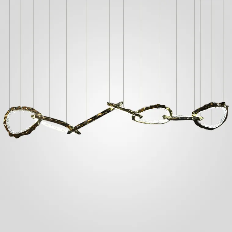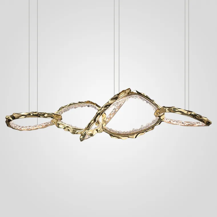 Светодиодная инсталляция в виде пересекающихся латунных кольцевых элементов оригинальной формы