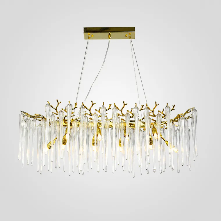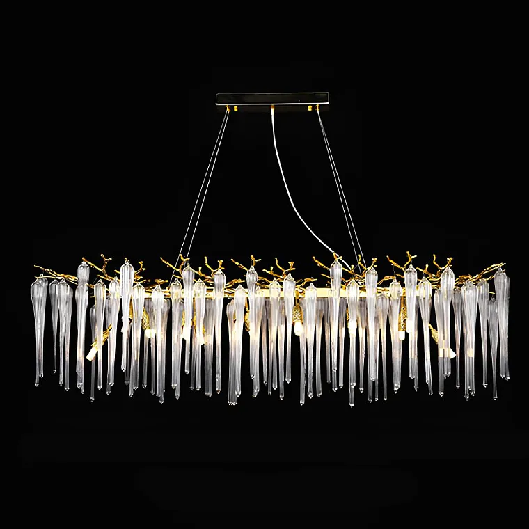 Дизайнерская люстра со стеклянными подвесками в виде сосулек на ветвистом каркасе