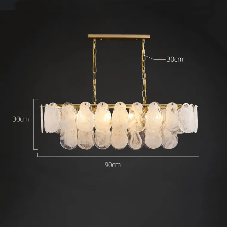 Реечный светильник с двурядным абажуром из стеклянных подвесок с эффектом белого дыма