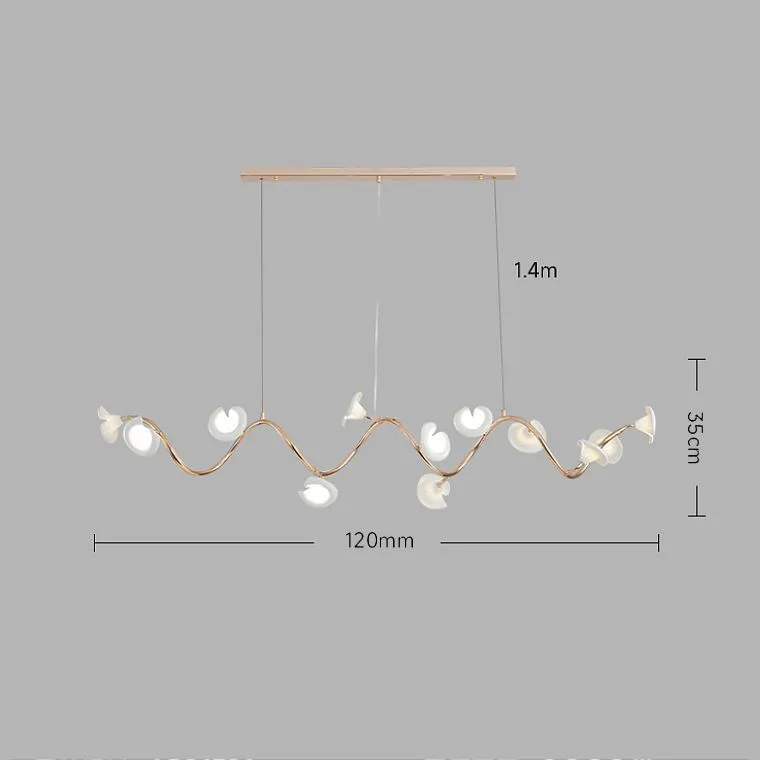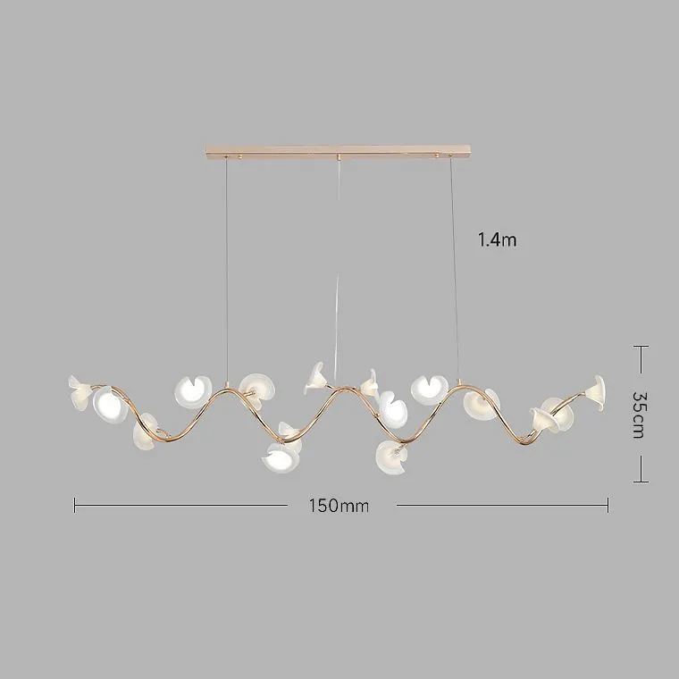 Серия люстр с плафонами в виде раскрывшихся бутонов на реечном каркасе
