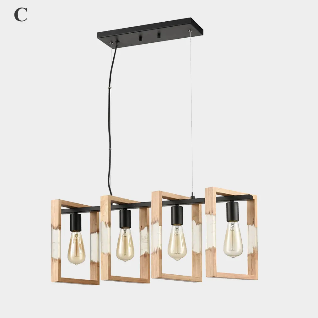 Серия реечных светильников с деревянными плафонами рамками и открытым источником света