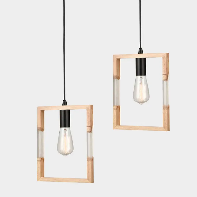 Серия реечных светильников с деревянными плафонами рамками и открытым источником света