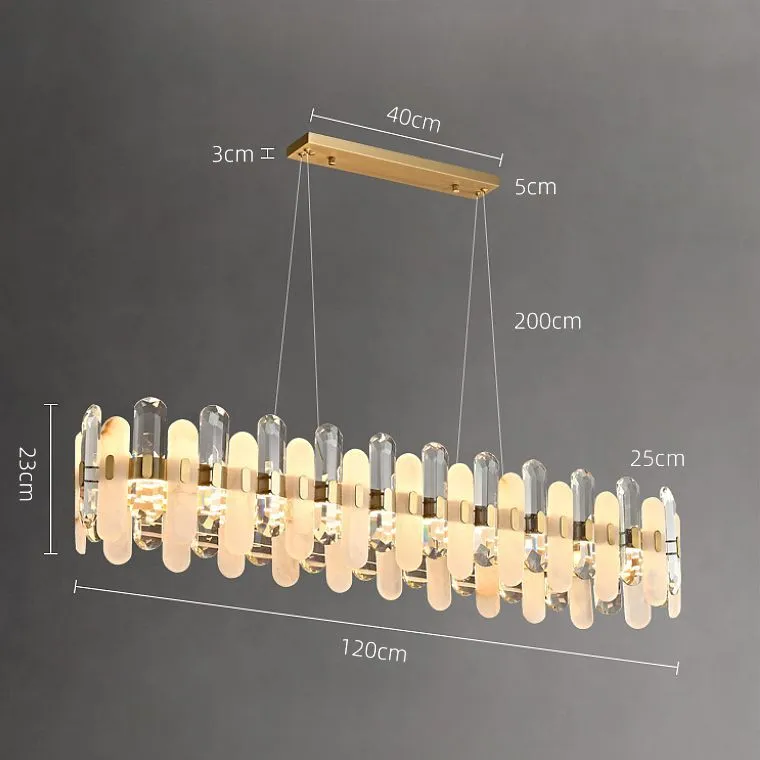 Реечный светильник с чередующимися мраморными и хрустальными пластинами с закругленными краями на латунном каркасе