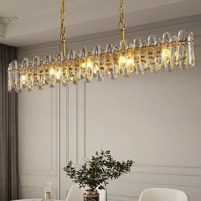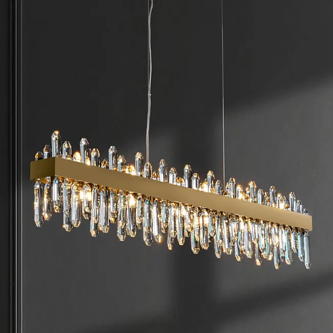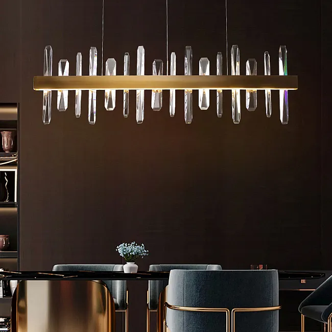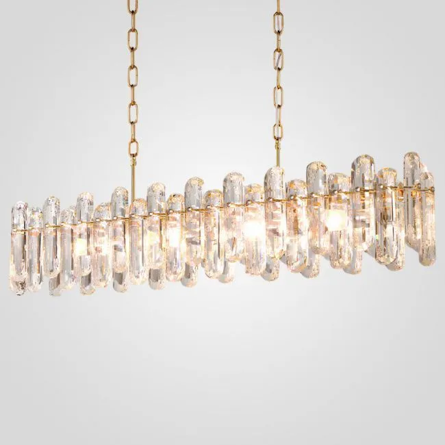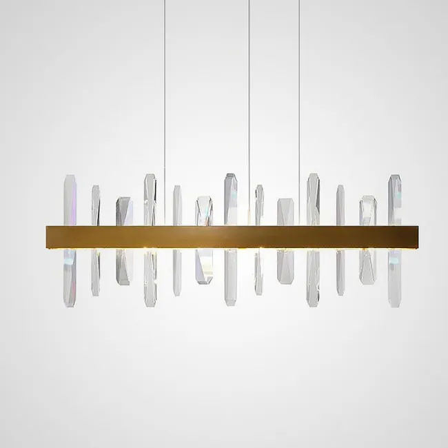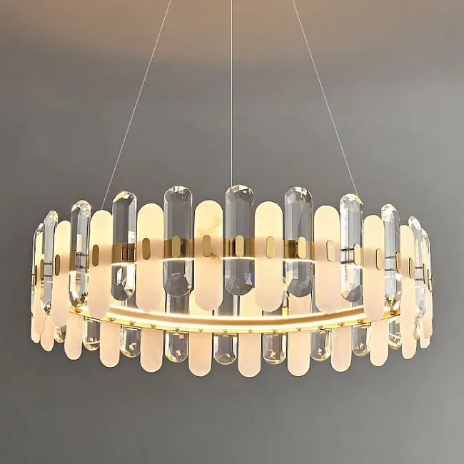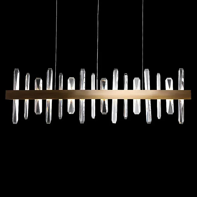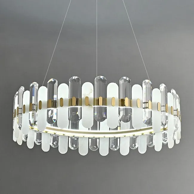 Реечный светильник с чередующимися мраморными и хрустальными пластинами с закругленными краями на латунном каркасе