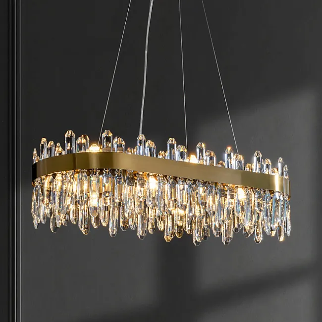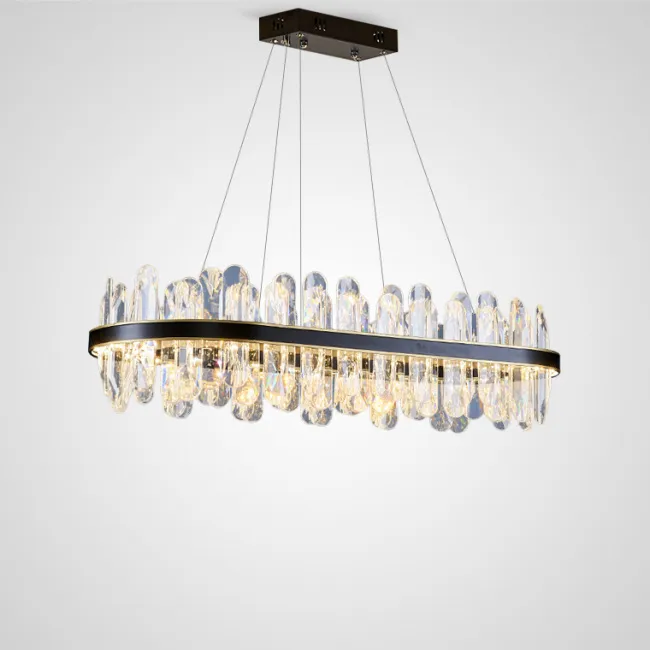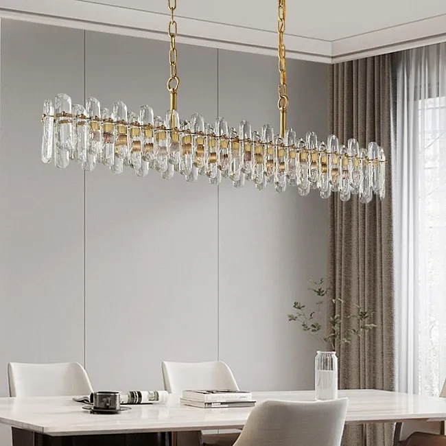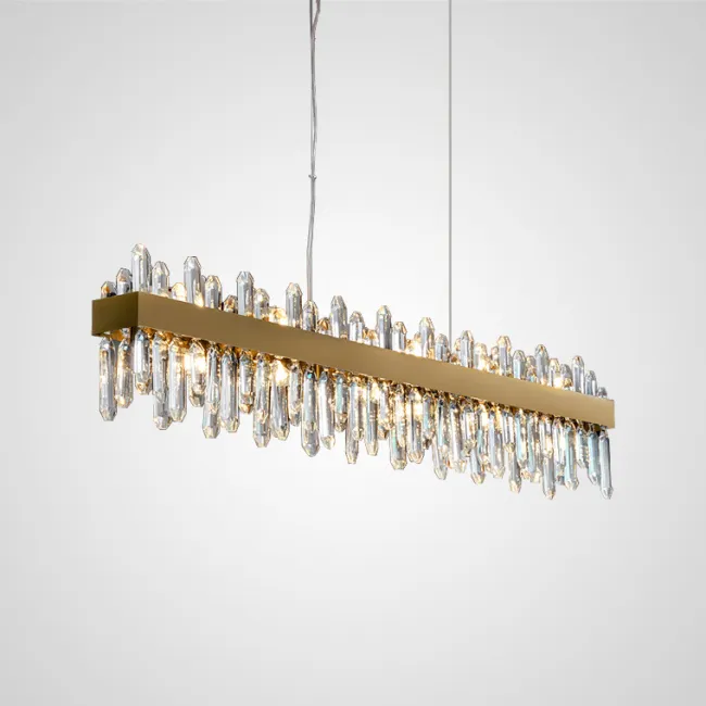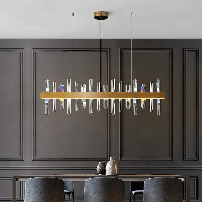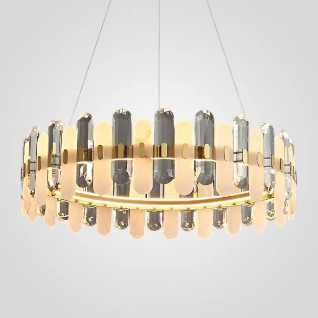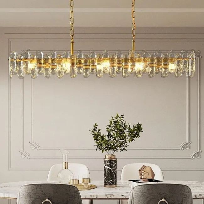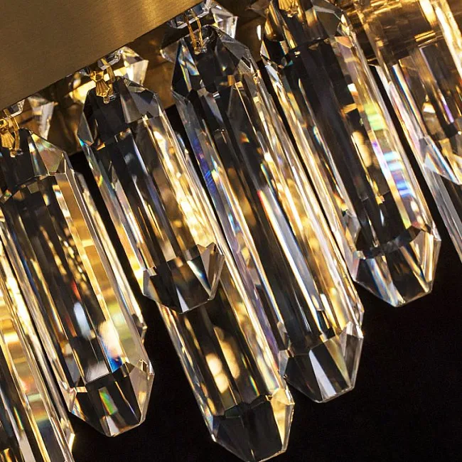 Реечный светильник с чередующимися мраморными и хрустальными пластинами с закругленными краями на латунном каркасе