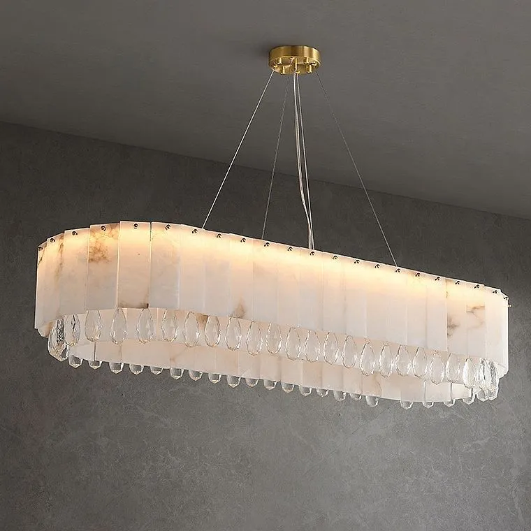 Светодиодный реечный светильник из мраморных пластин с декоративными хрустальными подвесками на удлиненном кольцевом каркасе