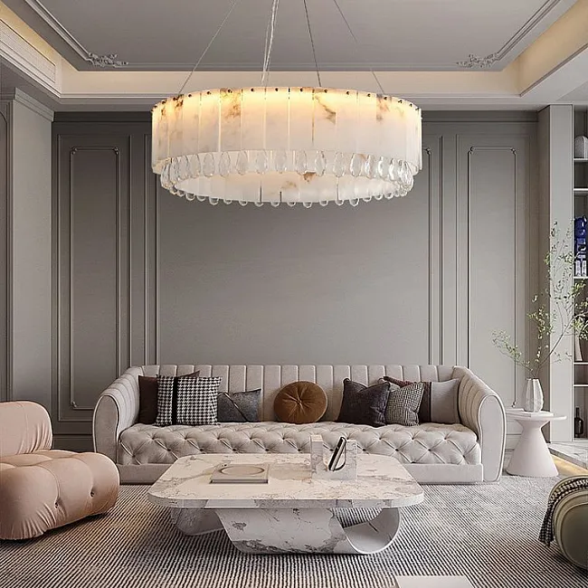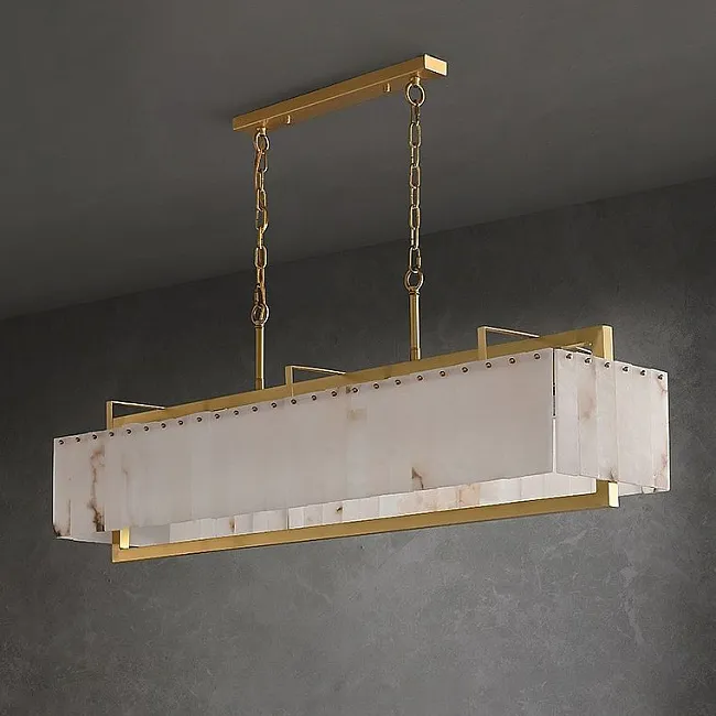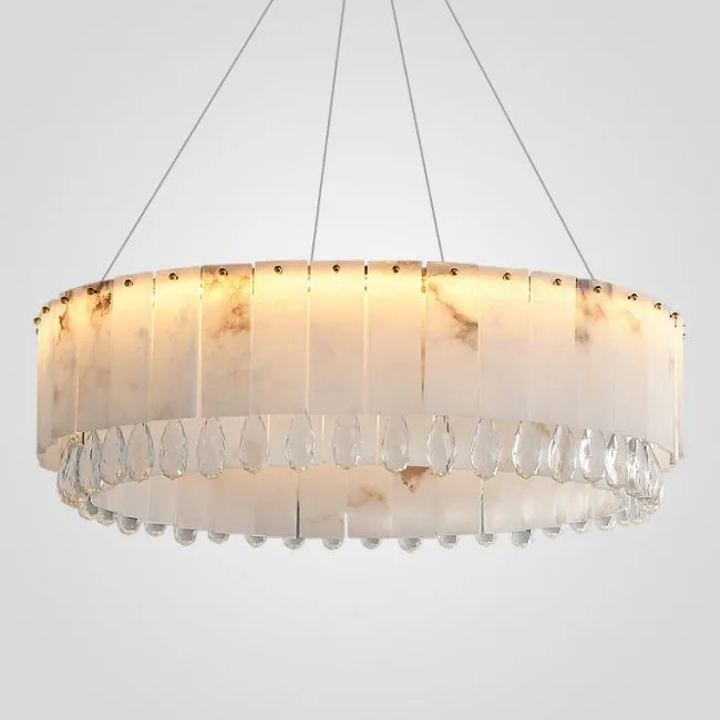 Светодиодный реечный светильник из мраморных пластин с декоративными хрустальными подвесками на удлиненном кольцевом каркасе