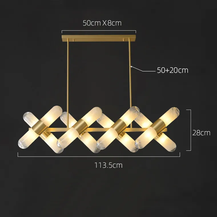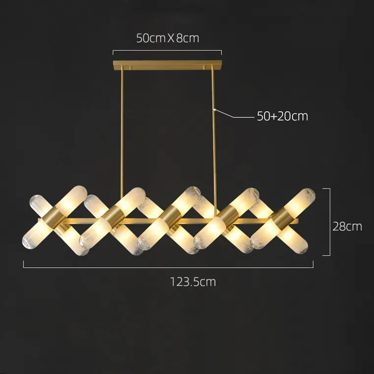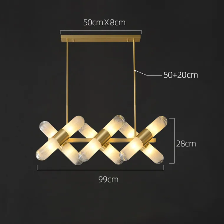 Серия реечных светильников c двойными перекрестными плафонами цилиндрической формы из белого стекла с эффектом льда