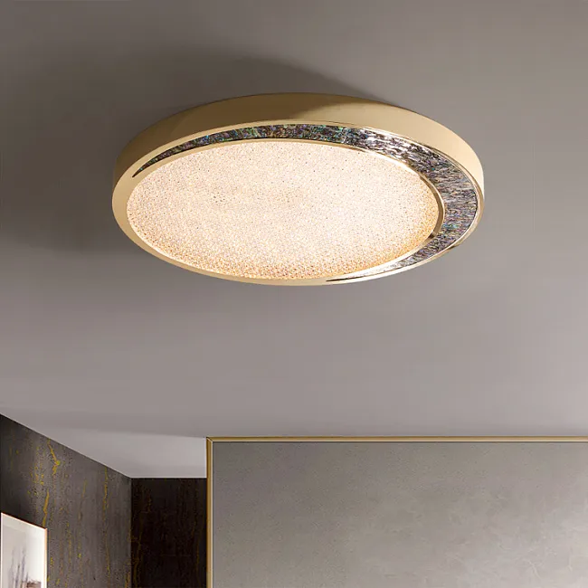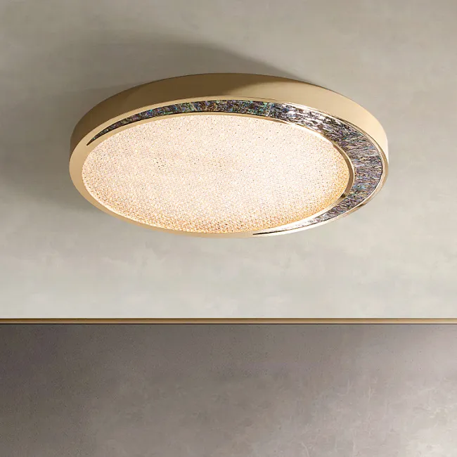 Реечный светильник с внутренней LED-подсветкой по контуру закольцованного корпуса с перламутровым декором