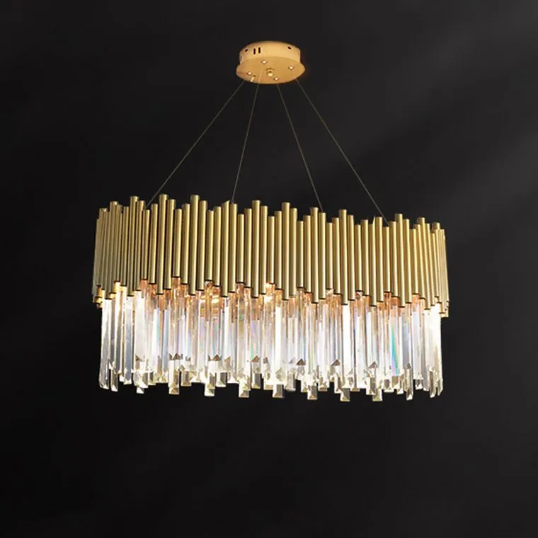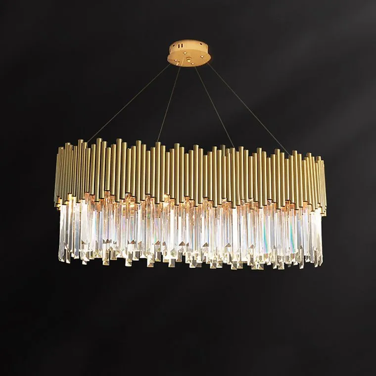 Каркас из золотых трубочек - он словно лучи солнца, проникающие сквозь окна, создает эффект пленительной атмосферы. Многослойные хрустальные подвесные пластины сочетают в себе игру света и отражений, разлетаясь мириадами искр, словно магический горошек, при каждом движении фантастики.