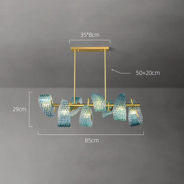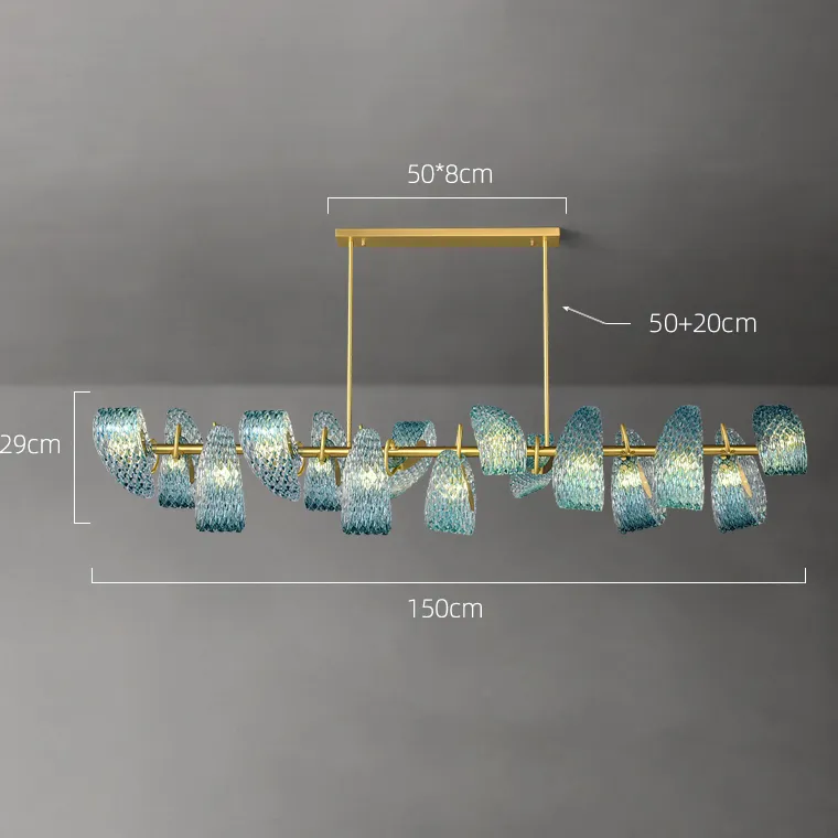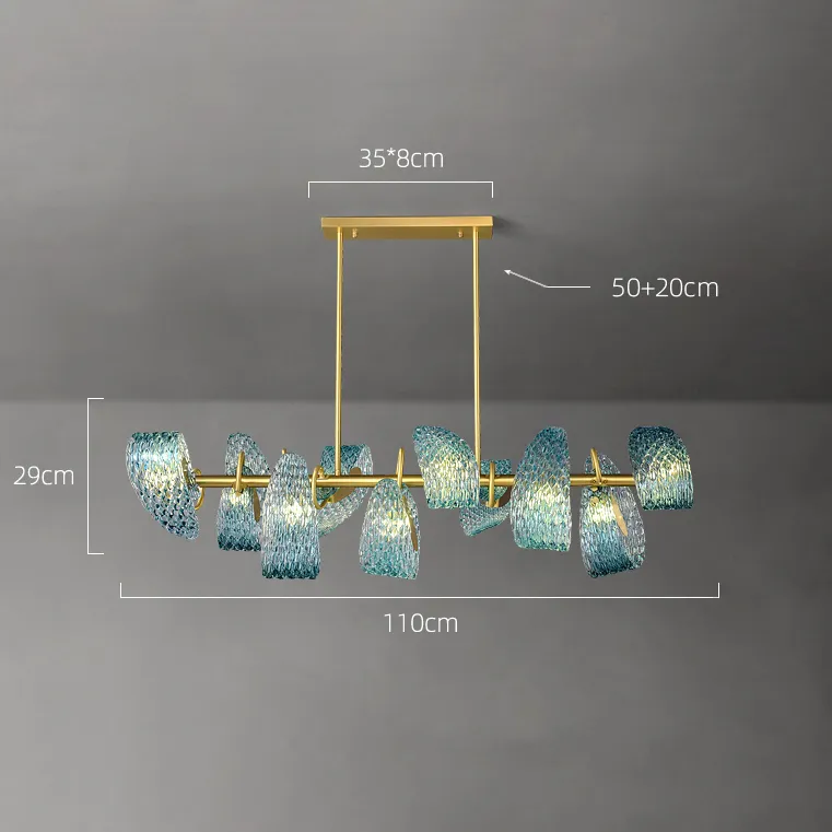 Серия реечных светильников с голубыми стеклянными рассеивателями в форме лепестков с панцирной поверхностью