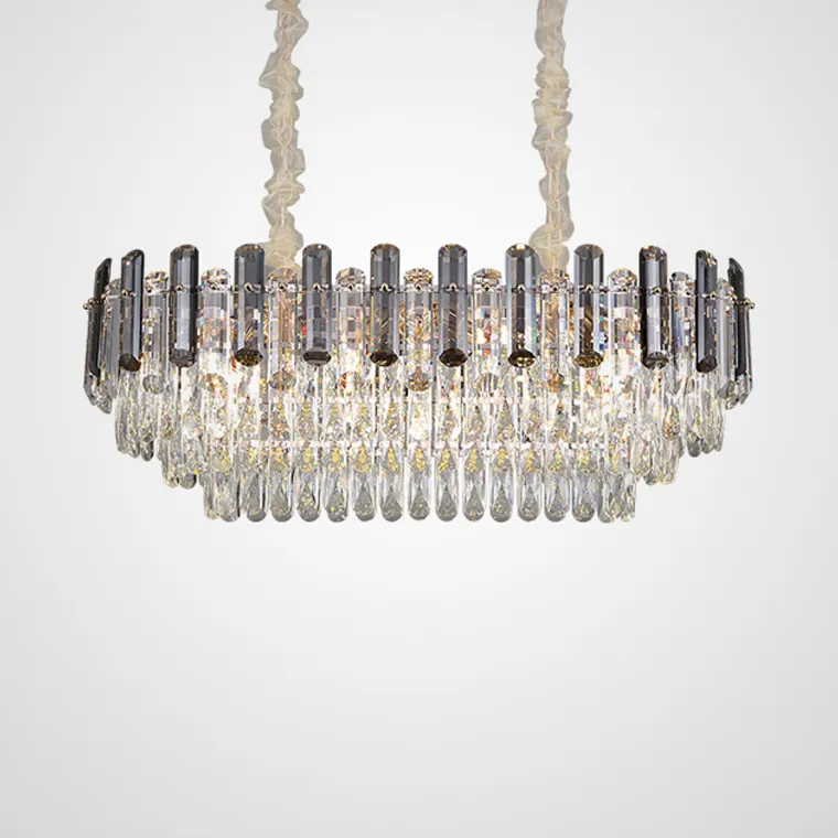 Серия рядных многоярусных светильников с дымчатыми и прозрачными рассеивателями из хрусталя К9