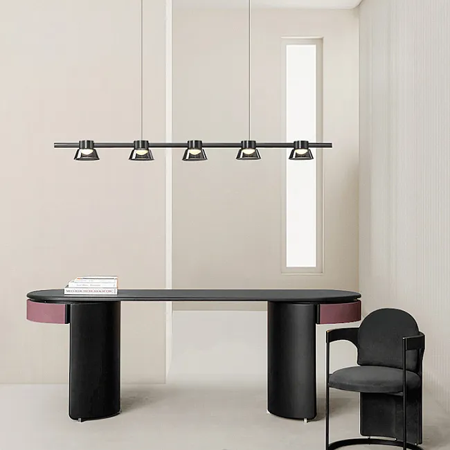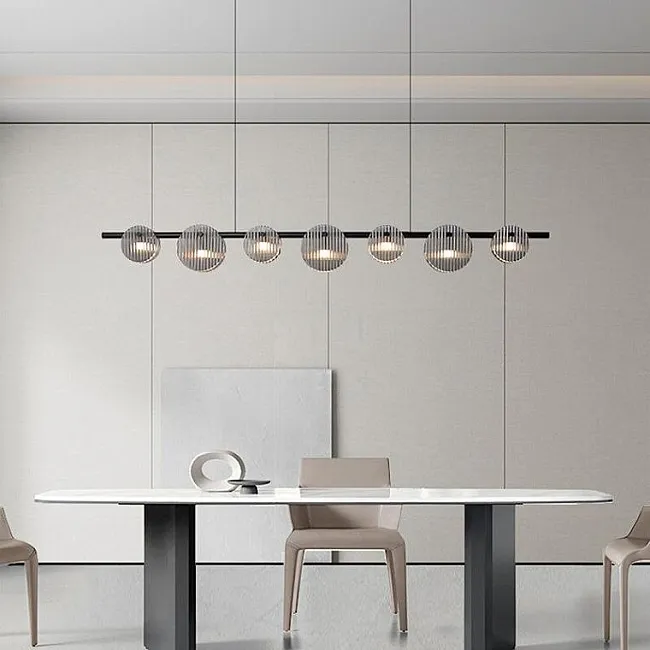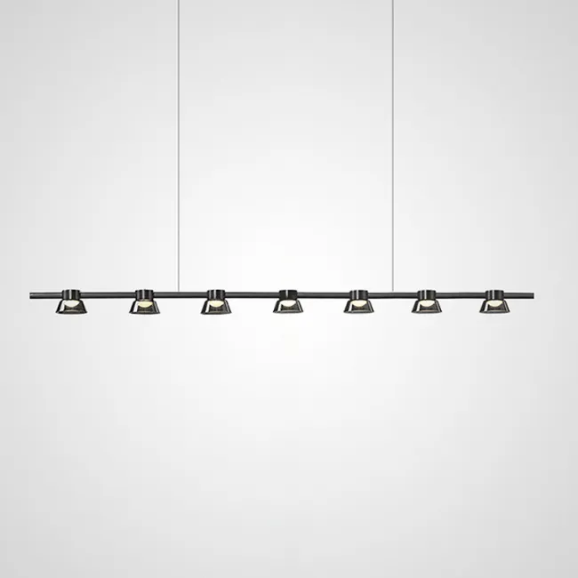 Чёрная штанга выступает в качестве идеальной основы, подчеркивая утонченность и строгость вашего интерьера. Количество плафонов - на выбор: 4, 5, 6 или 7 - позволит вам создать именно тот световой акцент, который необходим вашему пространству. Больше света или меньше? Решать вам!
