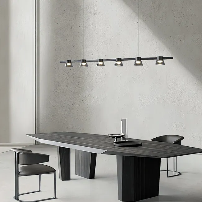 Представляем вам захватывающую серию реечных светодиодных светильников с конусообразными плафонами из дымчатого стекла -погрузитесь в атмосферу минимализма, строгости и лаконичности, которую привносит каждая деталь этих светильников.