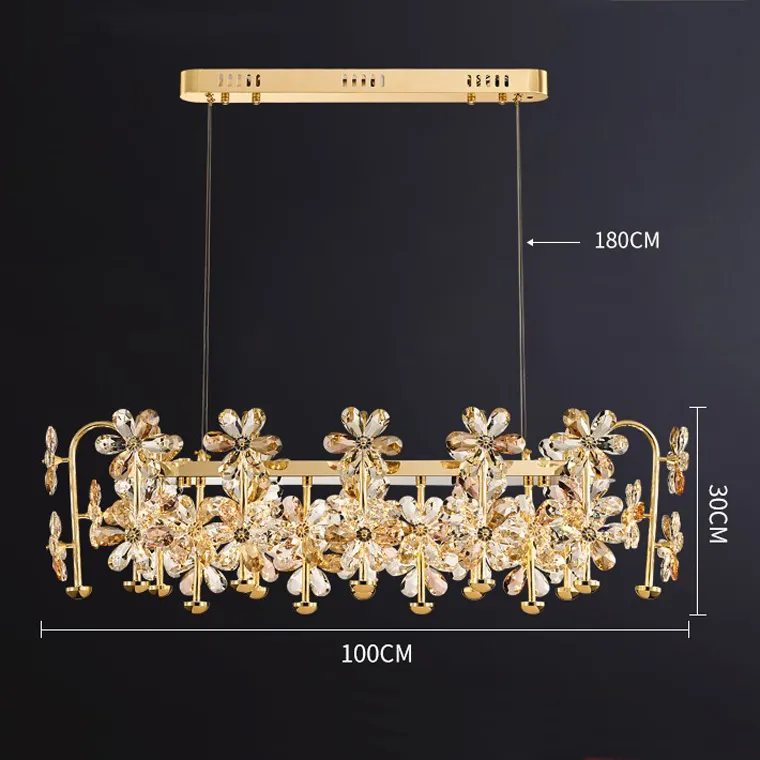 Реечный светодиодный светильник с хрустальными рассеивателями в виде цветов на изогнутых рожках
