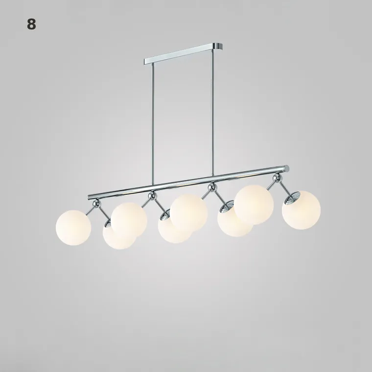 Размер крепления 45 × 7 × 4,5 см и размер плафона Ø 15 см, а также форма плафона в виде шара и цвет каркаса в хромированном исполнении добавят изысканности в ваш дом. Белый цвет плафона создаст отличное освещение, а высота подвеса в 20 + 30 см (стойка) позволит рассчитать оптимальную высоту для комфортного использования.