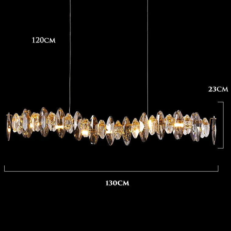 Серия реечных светильников с абажуром из ограненных хрустальных пластин каплевидной формы в дымчатом оттенке