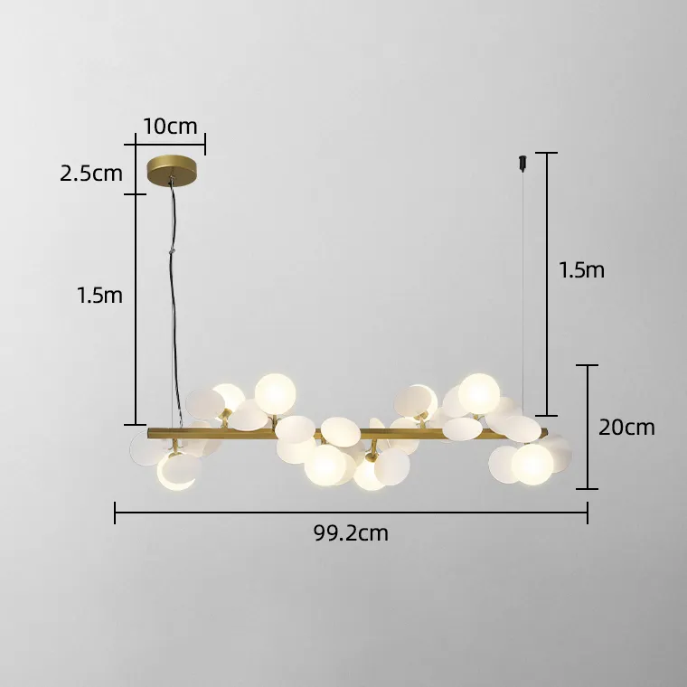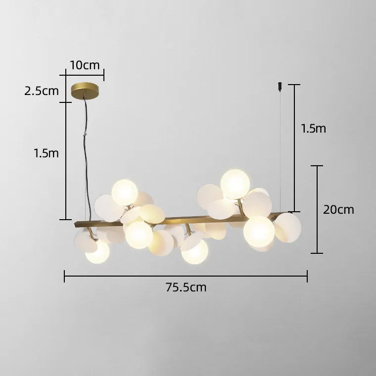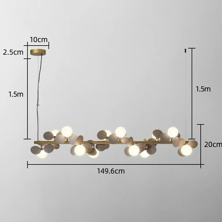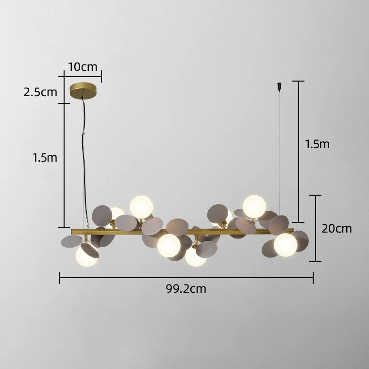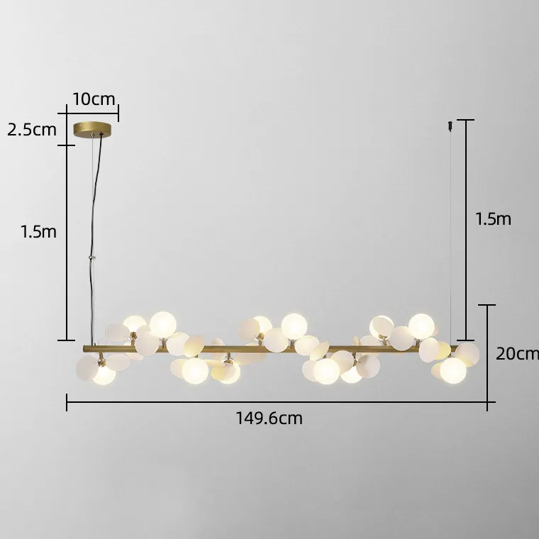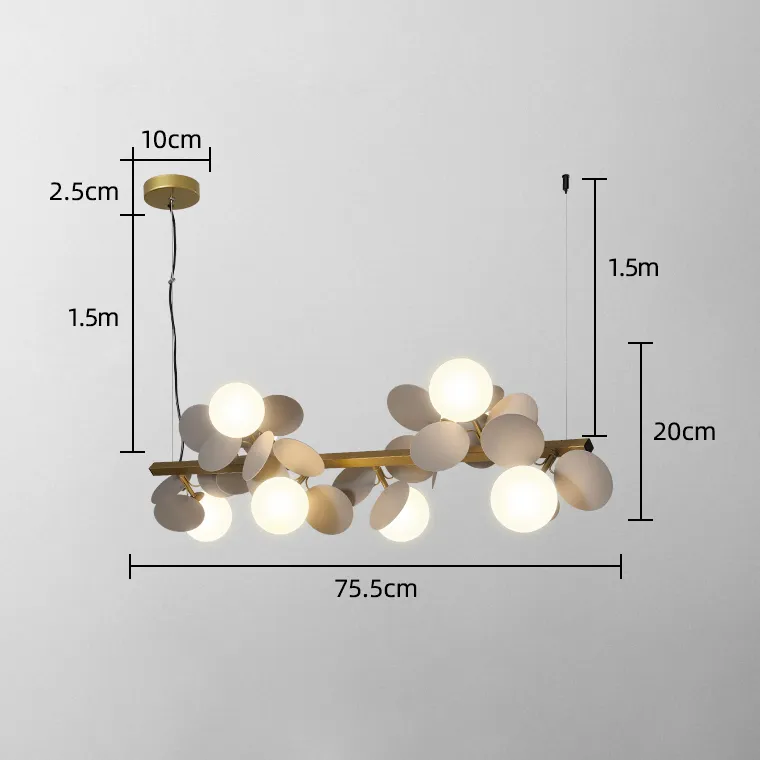 Реечная люстра MATISSE LONG SELF с плафонами шарами и декоративными лепестками